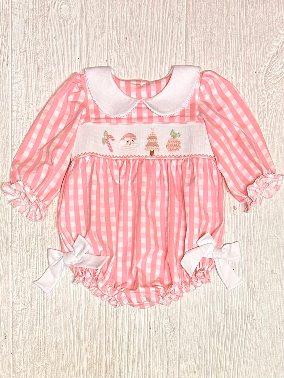 Whimsy Bay Pink Christmas Smocked Bubble
